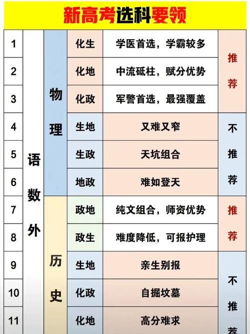 以河南为例,在 “3+1+2” 模式下,“物理 + 化学 + 生物” 和 “历史 + 政治 + 地理” 这两种组合成为主流。据某重点高中统计数据显示,选择 “物化生” 组合的学生占比达 40%,选择 “史政地” 组合的学生占比超过 30%,曾经多样化的选科组合正逐渐向这两种传统文理方向靠拢。
